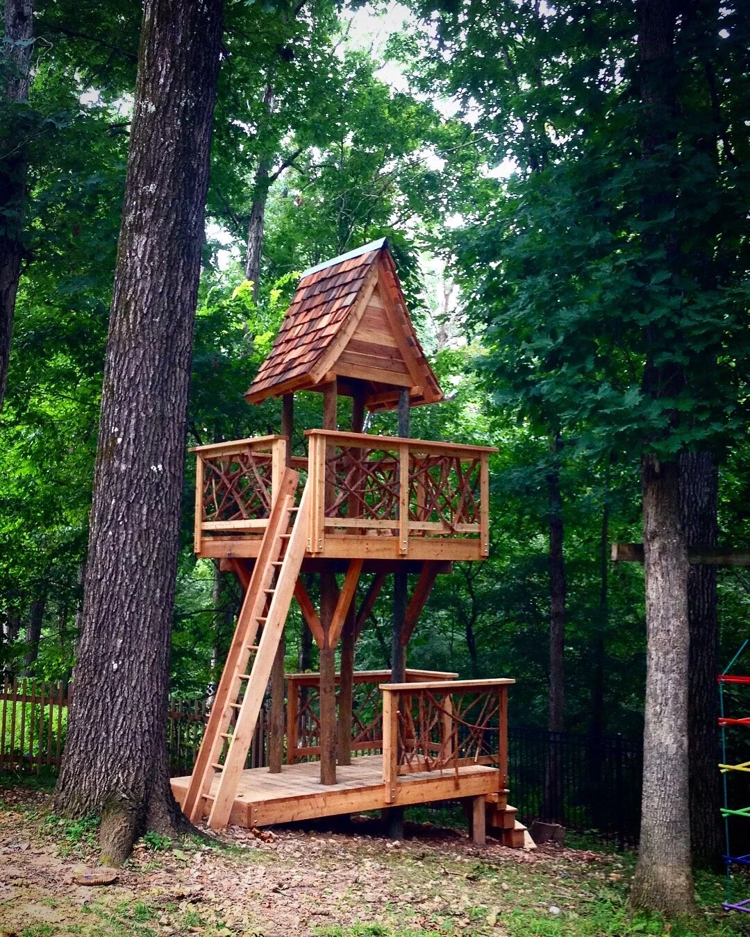 Whimsical Two-Story Playhouse Bentonville, ArkansasAugust 2019 View fullsize View fullsize View fullsize View fullsize View fullsize View fullsize playhouse, playsetKate HartAugust 13, 2019playhouse, two-story, whimsical, bentonville, arkansas, natural logs, branch railings, ladder, main page feature Facebook0 Twitter Pinterest0 0 Likes