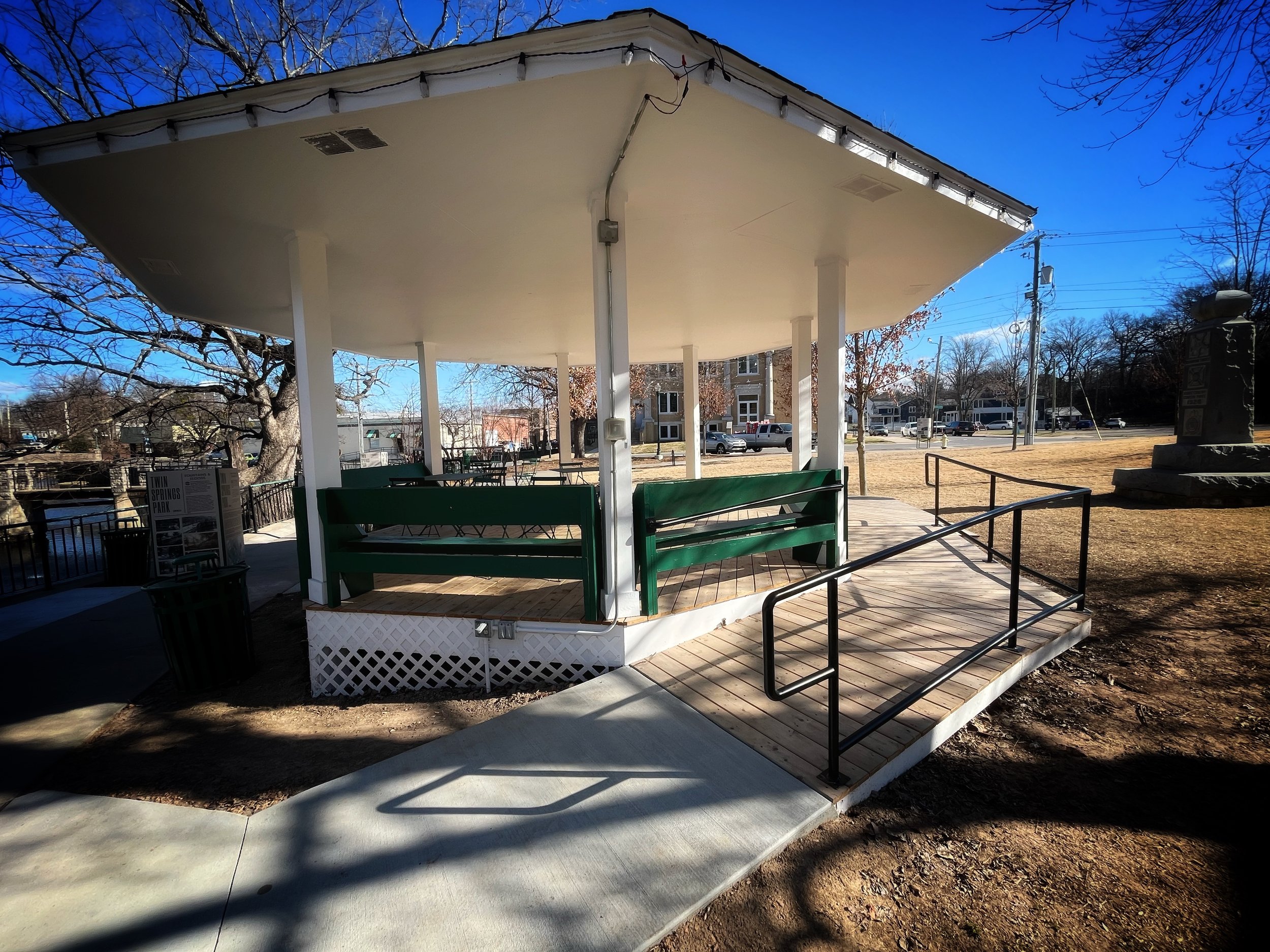 Renovation of a historic gazebo to create a new gathering and performance space, as well as the addition of wheelchair accessible ramps and bar seating overlooking Sager Creek. Complete in partnership with Project for Public Spaces, September, 2025
