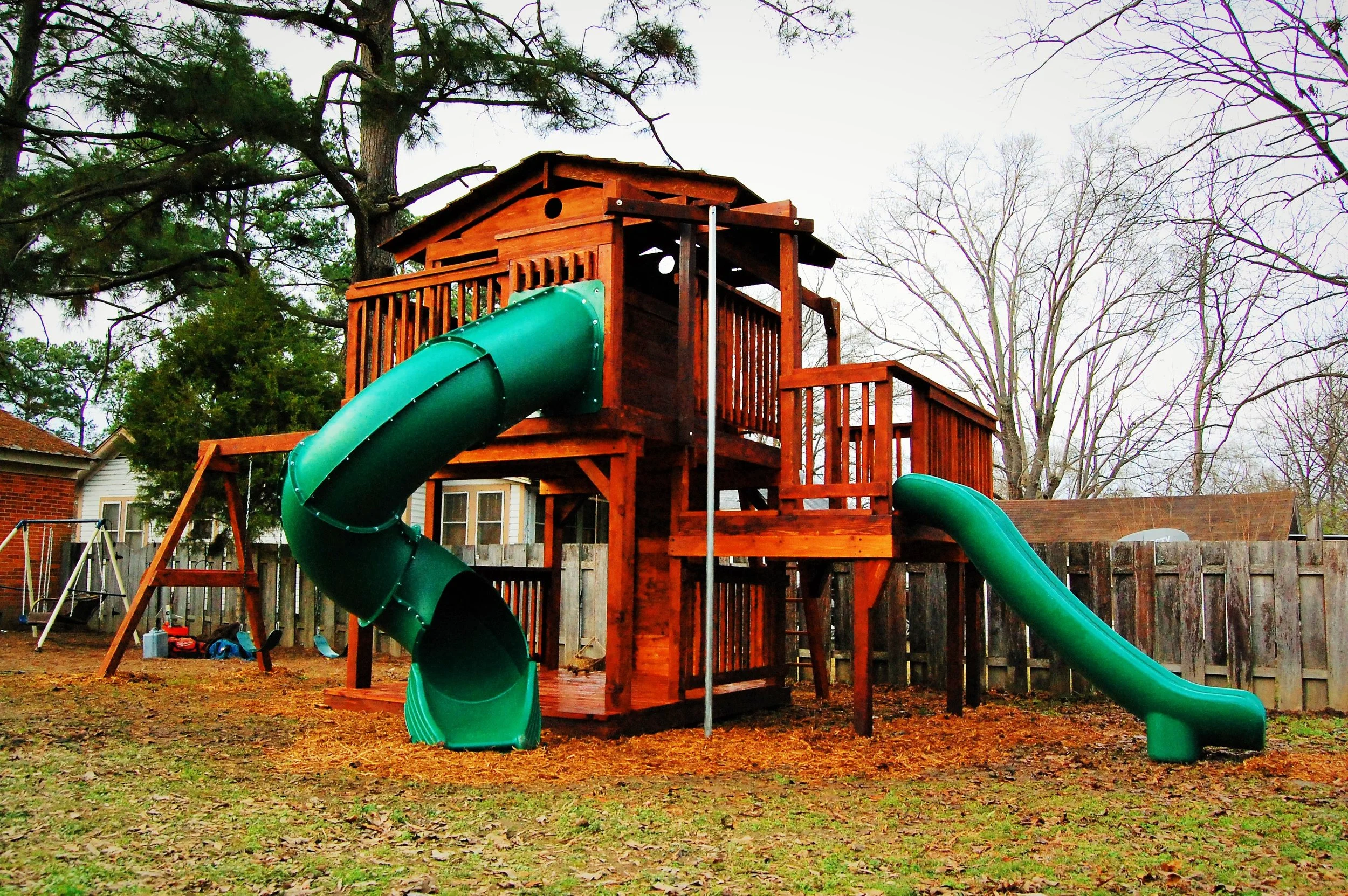 No trees? No problem! Playsets typically have a core tower or fort space, surrounded by activities like slides, climbing walls, rope ladders, swings, bridges, tunnels, and more. We offer stand-alone play structures for as little as $1,900.